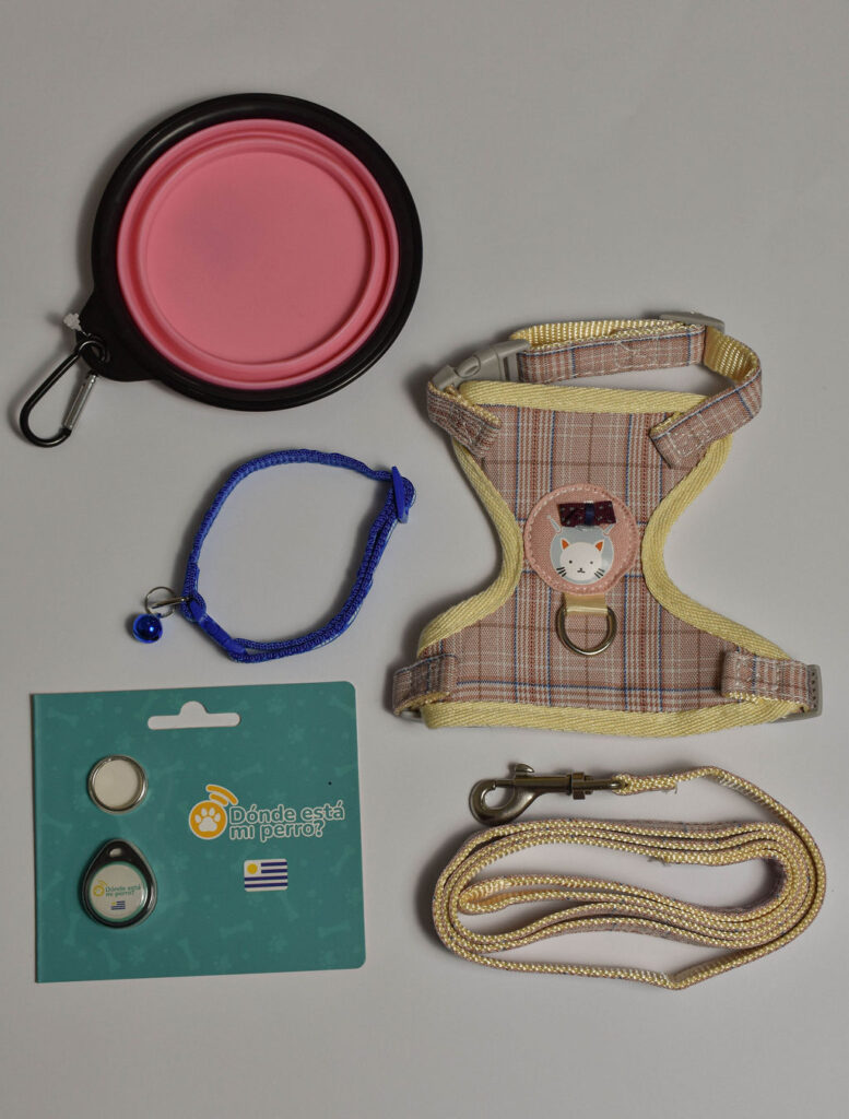 1 identificador qr 2 arnés para gato con correa ajustable 3 plato plegable solicita 4 collar cascabel